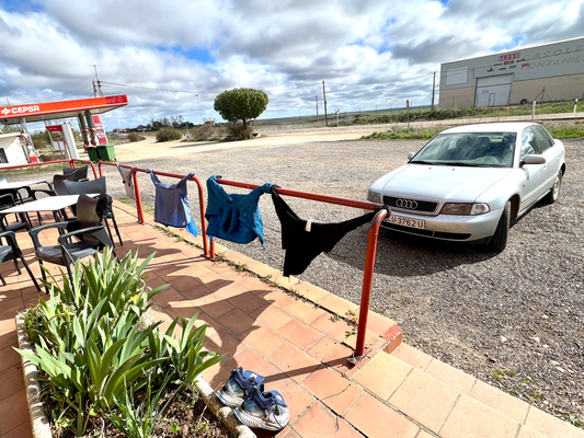 ich bemerkt, dass mir meine Gamaschen (Gaiters) fehlten. Die konnte ich nur im Hostal in Monesterio liegengelassen haben. Über spanisch sprechende Freundinnen von uns konnten wir a) klären dass sie