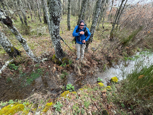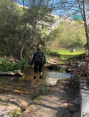 einem Bachbett kräftig herunter. So mußte man genau schauen wo man langläuft, um keine nasse Füße zu bekommen.