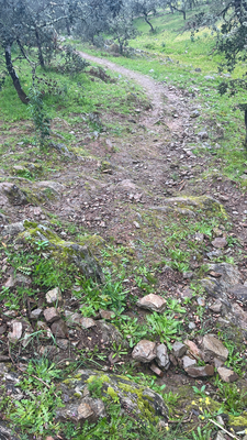 eigentlicheWeg. Auf dem groben Schotterweg befanden sich rechtsseitig Madarinenplantagen u linksseitig Olivenhaine. Der Weg wurde breiter u war mit PKW befahrbar. Bis ca. 5km vor dem Zielort gab es