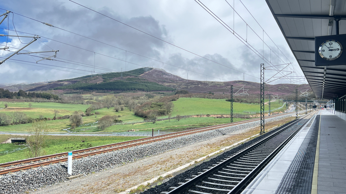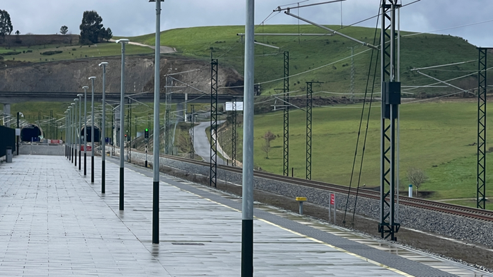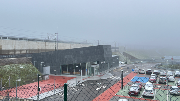Wetterbedingungen nicht anders als in Lubian. Von der Hauptstraße gingen wir zur Bahnstation. Am Automaten wurde die Fahrt nach Ourense für 1537 h angezeigt. Zu buchen war das Ticket aber nicht.