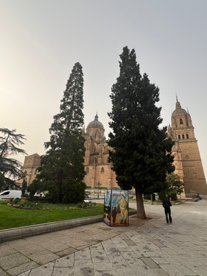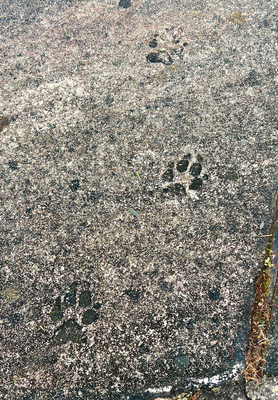 Vollschutzanzügen die Pflanzen. An einer Herberge waren im Betonboden Abdrücke von einem Hund oder Wolf zu sehen. Gegen 14 h trafen wir auf dem Platz der Kathedrale ein. Hier standen oder lagen