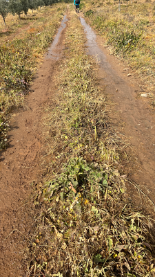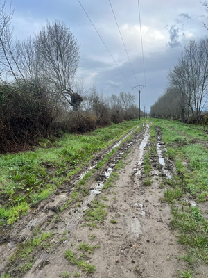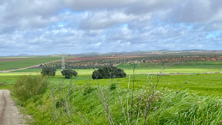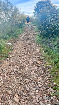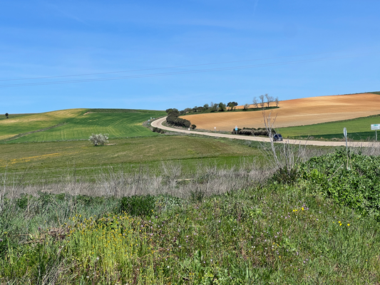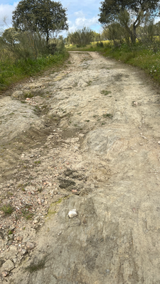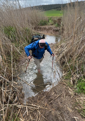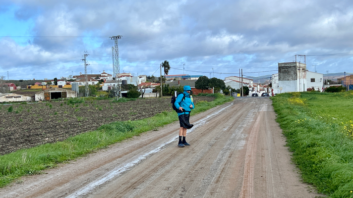ca10 km. Um uns herum gab es Felder mit Kartoffeln, Raps oder Olivenplantagen. Vor Guillena mussten wir einen längeren Feldweg passieren, der durch den vorherigen Regen zum Teil sehr matschig