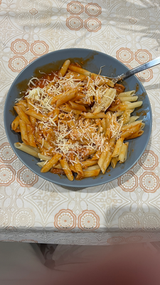 Nudelsuppe mit Wurst/Fleischeinlage noch eine Tortia. Alles schmeckte sehr gut.