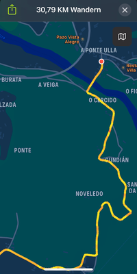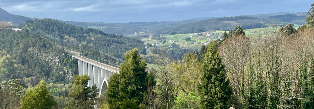 die letzten km ging. Die zogen sich in die Länge und wurden nach passieren einer Eisenbahnbrücke für die Schnellzüge anstrengend, da es ca 2-3 km bis Ponte Ulla bis zu 10-12% steil bergab ging.