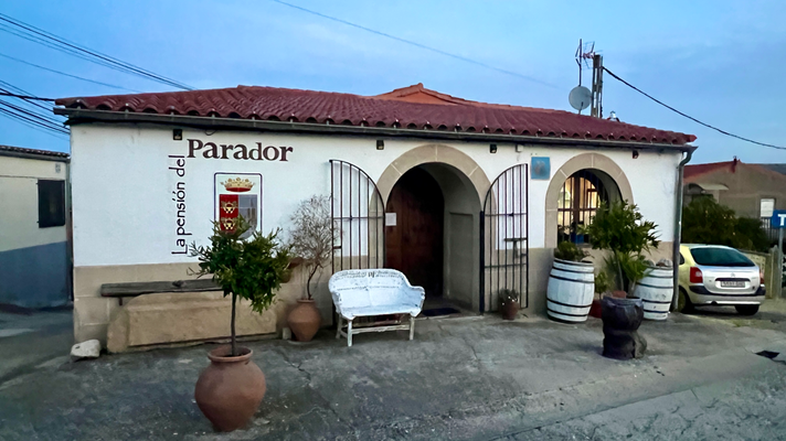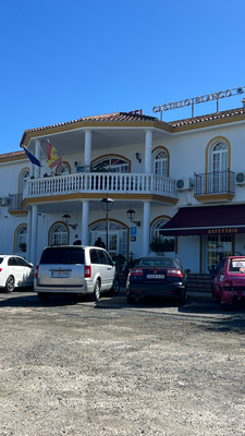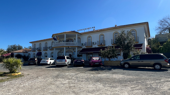 Das Hotel Castillo Blanco,in dem wir heute übernachten, befindet sich rechtsseitig der Bundesstraße. Im ganzen Ort hatte gestern kein Restaurant geöffnet. Der dortigen Tankstelle gegenüber hatte eine