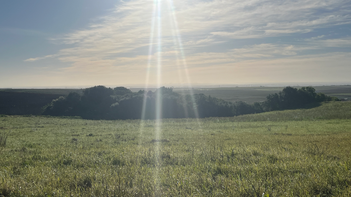 zwischen einer Landstraße u einer Autobahn, ehe er nach 2 km nach links abbog zu einer hügeligen Landschaft. Die Temperaturen kamen nicht über 12°, mal schien die Sonne, kurz vor dem Ziel kam