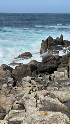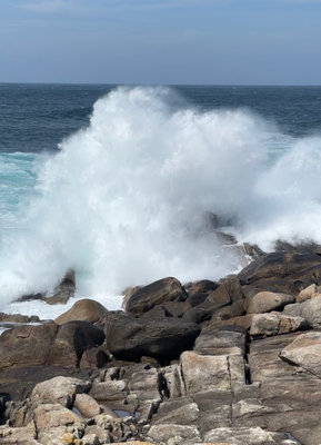 Beim Leuchtturm selbst tobte das Meer. Es war sehr windig und immer wieder brachen sich die 2-5 hohen Wellen in tollen weißen Gischtwolken an den dortigen Felssteinen. Neben der