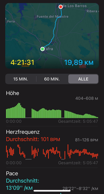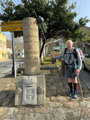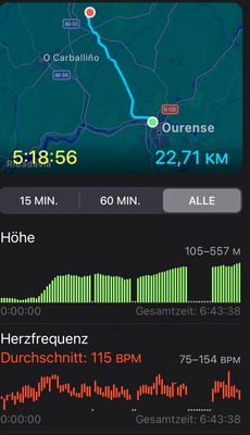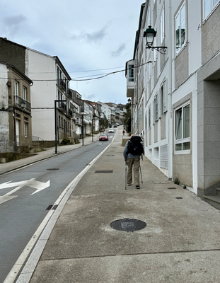 auf das Höhenprofil zeigte, dass die 21 km lange Strecke bis Santiago durchgehend aufwärts ging. Heute war seit langem das Wetter freundlich und die Temperaturen lagen schon bei 13°. Ein guter