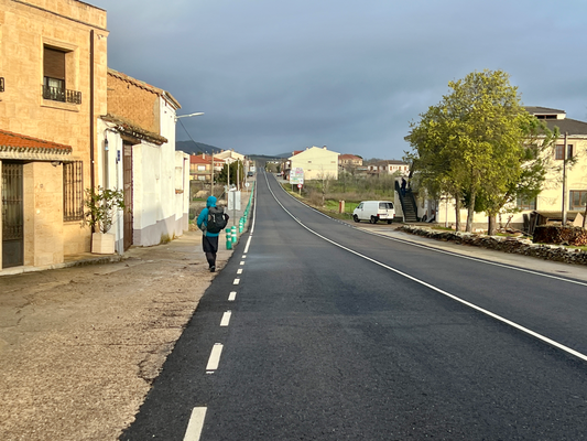 Nach dem Frühstück kam die Sonne durch u wir entschieden uns zu laufen. Bis nach Calcadilla de los Barros ( 7 km )lief es gut. Auch in dem Ort hatte keine Bar geöffnet, um was