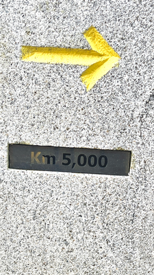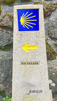 ein Supermarkt in der Nähe auf. Wir kauften uns für unser Abendessen Nudeln, Soße u Tunfisch, da es dort keine Bar oder Restaurant gibt. Zu Beginn sah ich eine Wegmarkierung mit km 102. Gegen
