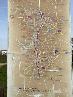 Villafranca waren Vororte zu sehen. Gegen Mittag ließ der Wind nach u gleich wurde es warm, so um die 19°. Im Ort übernachteten wir im 3 Sterne Hotel Diana. Vor dem Start der heutigen Etappe hatte