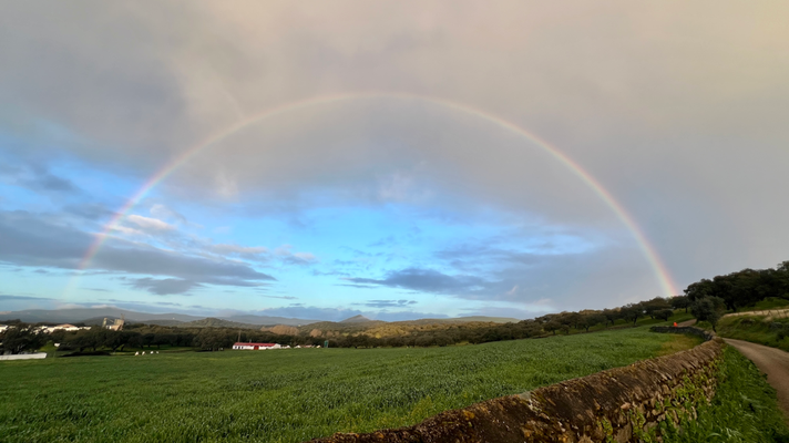 folgte ein großer Regenbogen. Wir trafen das österreichische Paar, Gudrun u Thomas u so waren die ersten 12 km bis zu einem Rastplatz recht kurzweilig. Auf der Strecke zum Rastplatz fand ich aufdem