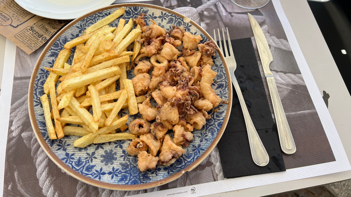 Essen in den zahlreichen Restaurants der Promenade einnahmen. Ich aß leckere Calamaries in einem kleinen Lokal auf der linken Seite zum Ende des Ortes. Hier waren nur Einheimische im Lokal. Auf
