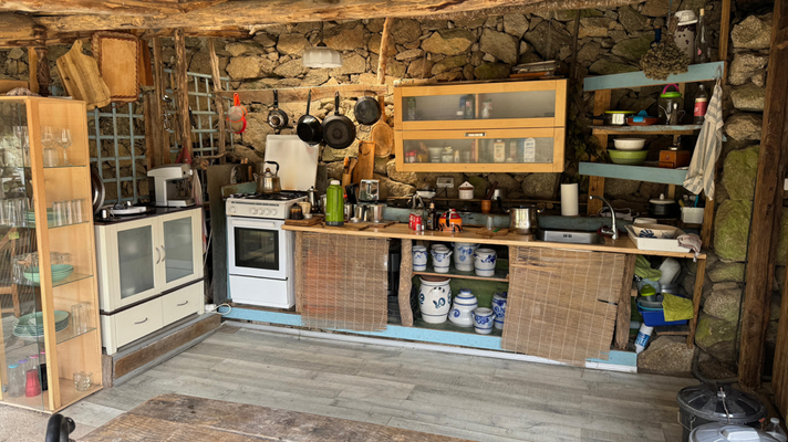 Im Erdgeschoss ist die Küche im OG die Zimmer. Als wir um 16 h eintrafen machten sie den Pellepsofen an. Wir nutzten dies um unsere nassen Sachen zum trocknen aufzuhängen. Bis