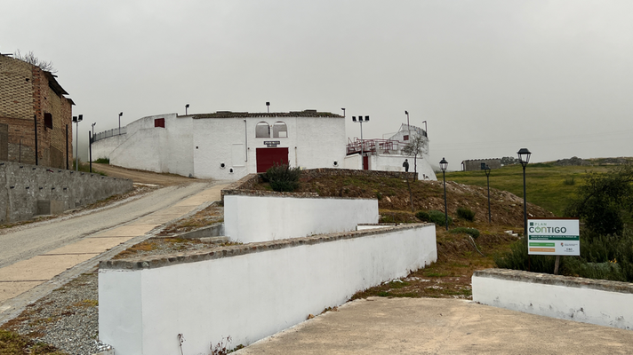 Um 0730 h frühstückten in einer kleinen Bar. Ab 08.00 h gings auf den Weg. Zum Ortsausgang steht eine alte Stierkampfarena, die nicht mehr genutzt werden darf.